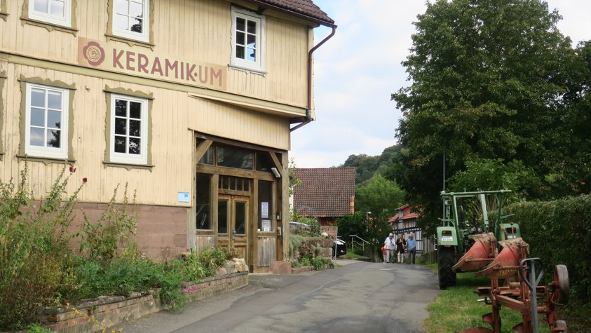 Derart gestärkt legt die Gruppe auf der Rückfahrt ins Schaumburger Land noch einen Zwischenstopp im Künstler- und Töpferdorf Fredelsloh ein. In dem Solling-Ort mit seinen rund 900 Einwohnern scheint die Zeit ein wenig stehengeblieben zu sein. Schmale Gassen, Hühner und Gänse in den Gärten, bunt bepflanzte Vorgärten: Rund um die romanische Klosterkirche im Zentrum geht es beschaulich – man könnte auch sagen: verschlafen – zu. Seit dem Mittelalter ist Fredelsloh von einer nahen Tongrube geprägt, weshalb es bis heute viele Töpfereibetriebe im Ort gibt, die bezaubernde Tassen, Töpfe und Krüge feilbieten.