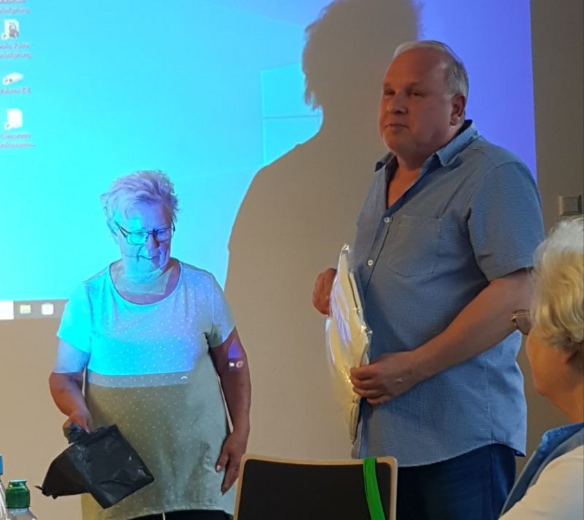 Heidi Stempor hatte im Namen aller Mitglieder unserer Selbsthilfegruppe für unseren Herrn Bertram ein kleine Überraschung vorbereitet. Sie soll ein Dankeschön für seine bisher geleistete Arbeit in unsere Selbsthilfegruppe sein. Die Freude war sehr groß und Herr Bertram bedankte sich sehr bei allen Mitgliedern der Selbsthilfegruppe von Herzen.