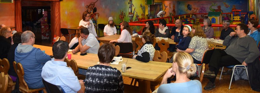 Bei einem gemeinsamen Mittagessen bei dem die bis dahin munter im Abenteuerland tobenden Kleinen auch mit an den Tisch kamen wurden die Kontakte noch vertieft. Gemütlich klang der durch und durch familientaugliche Sonntag danach aus. Viele Familien blieben noch länger als der Zeitplan es ursprünglich vorgegeben hatte. Ein gutes Zeichen, welches deutlich macht, dass wir mit einem Angebot dieser Art einen Nerv getroffen und eine Lücke geschlossen haben. Auf seinem nächsten Arbeitstreffen Ende November wird der Arbeitskreis Jugend die Veranstaltung auswerten und den nächsten Familientreff planen. Mit im Blick wird dabei aber auch ein weiteres Angebot für Jugendliche ab 12 Jahren und deren Eltern sein.