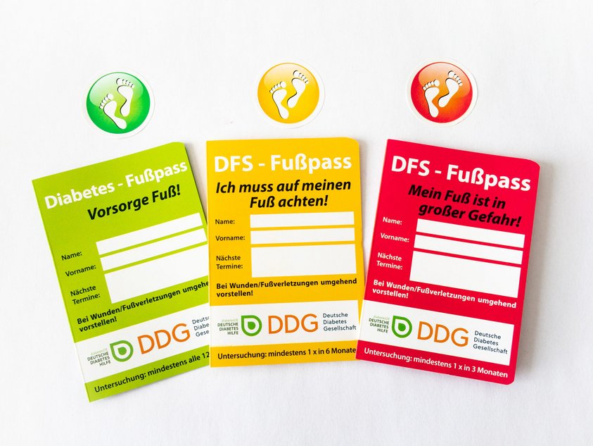 Die Farbe des Passes weist auf das individuelle Risiko für das Diabetische Fußsyndrom hin. Patienten, die einen grünen Pass erhalten, haben ein geringes Risiko und sollten daher nur einmal pro Jahr ihre Füße von ihrem Arzt untersuchen lassen. Wer einen gelben Pass hat, dem wird geraten, die Füße alle sechs Monate kontrollieren zu lassen und auch regelmäßig zur Fußpflege zu gehen.
