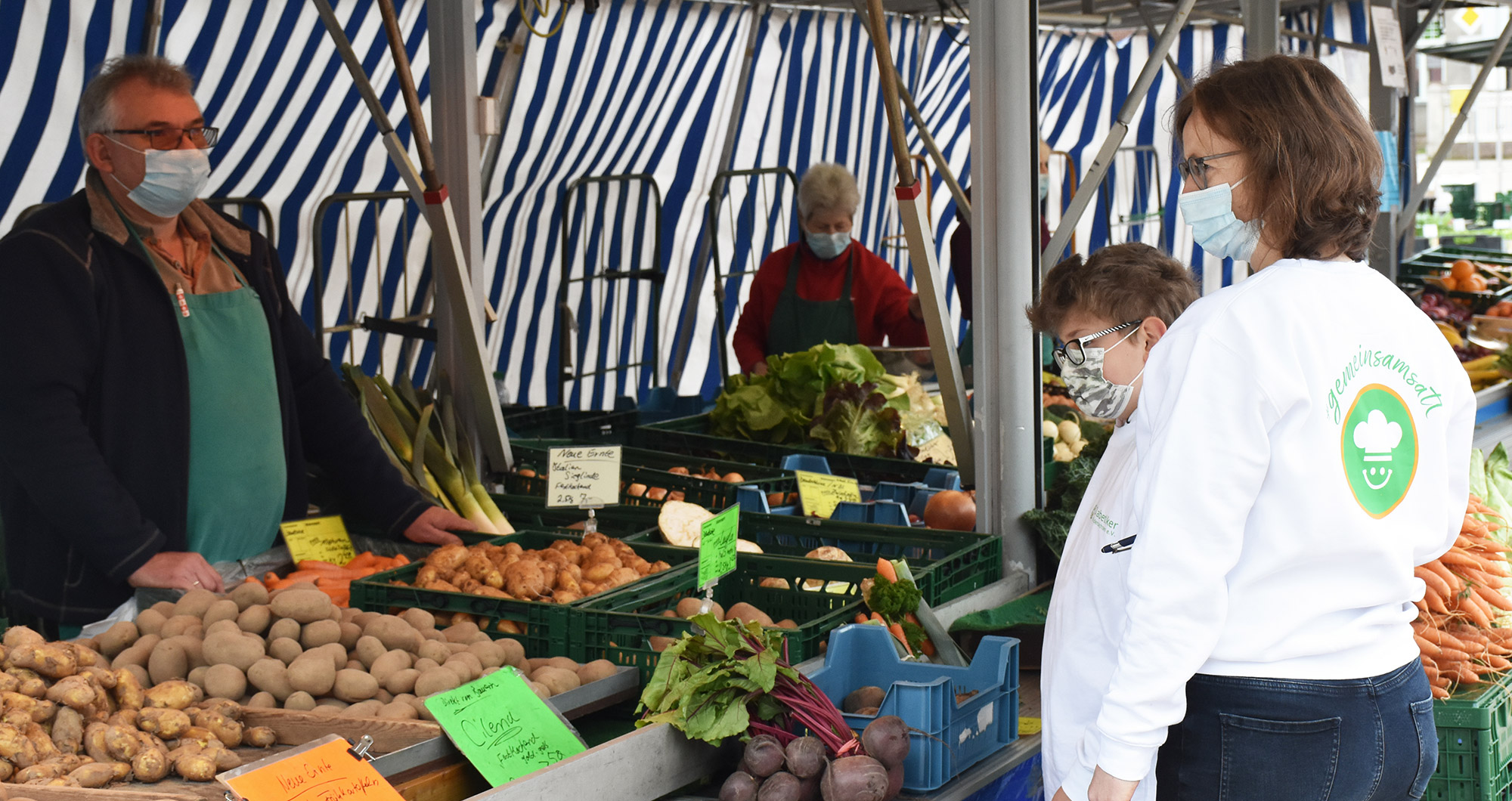 Um so richtig gut kochen zu können, muss man aber zunächst die richtigen Zutaten parat haben. Diese besorgten sich die teilnehmenden Kinder frisch auf dem Wolfenbütteler Wochenmarkt. Die bunte Truppe blieb dort nicht lang unbemerkt und gleich mehrere Betreiber von Marktständen boten ihre Beratung an. Aber auch das Lob für unser Projekt kam nicht zu kurz. Kinder, die den Erwachsenen zeigen, dass es beim Essen auch anders geht – das kam gut an.