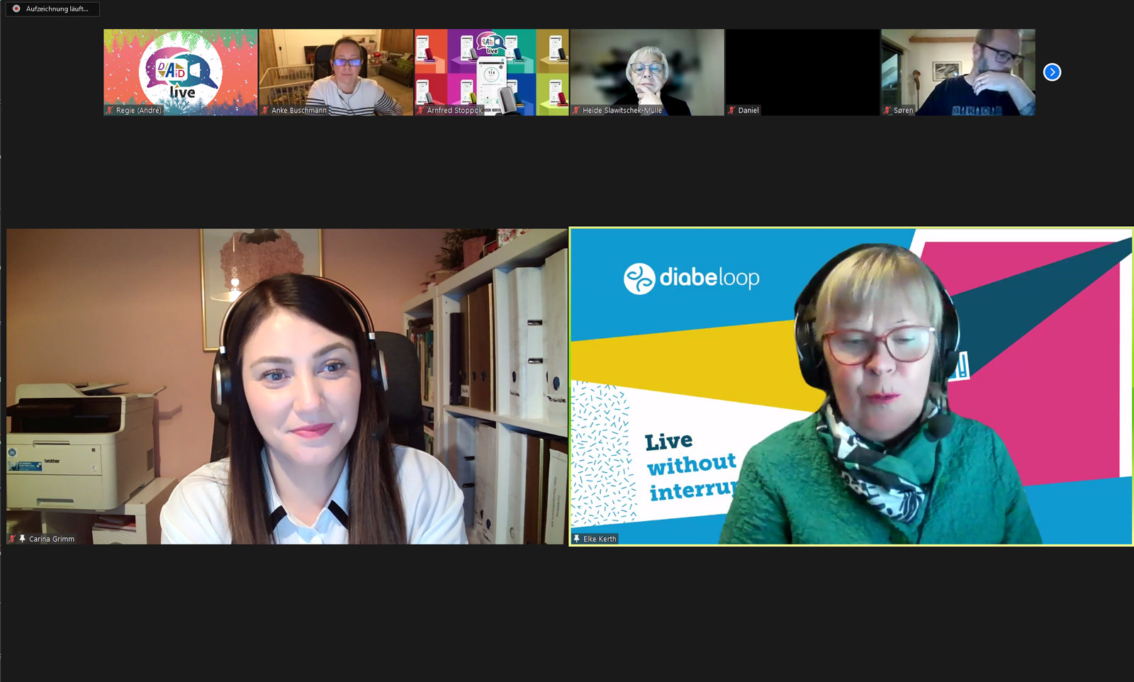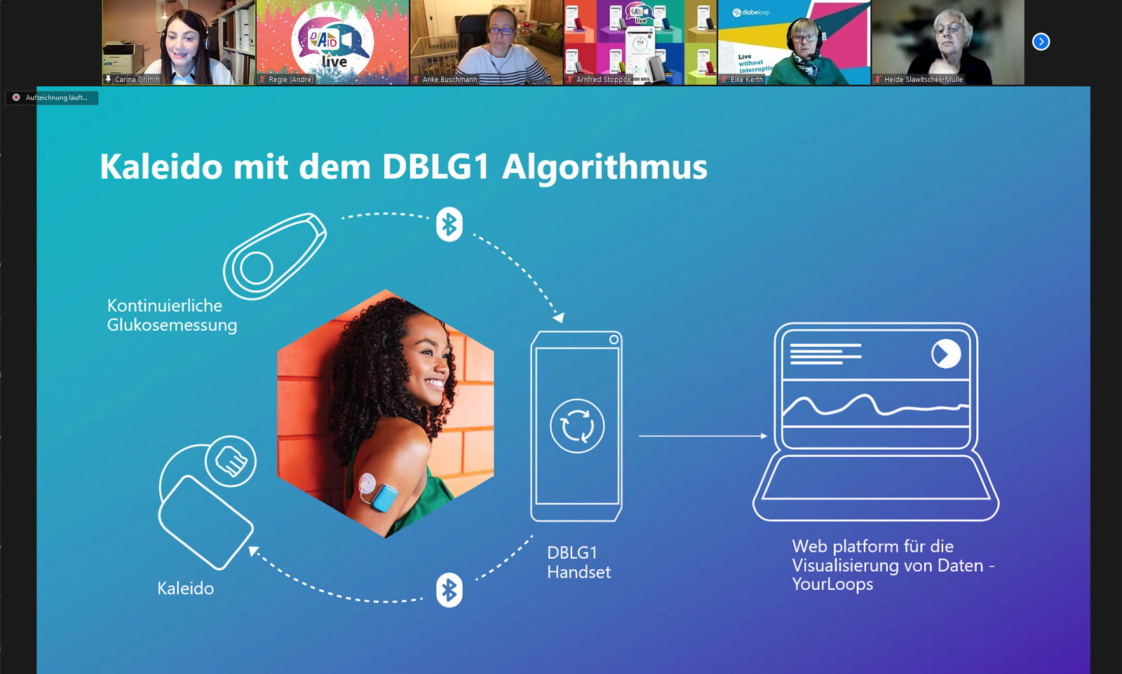 Eine ausführliche Einführung in die Diabeloop-Technik gab Elke im Anschluss an Carinas Vortrag. Hier sei zusammenfassend angemerkt, dass das Diabetes-Management hierdurch zwar sehr vereinfacht und optimiert werden kann, dass aber selbstverständlich – wie bei allen AID-Systemen – der Mensch der wichtigste Faktor bleibt und ein Hybrid-Closed-Loop-System ohne Infos zu Nahrungsaufnahme und Bewegung nicht funktioniert.