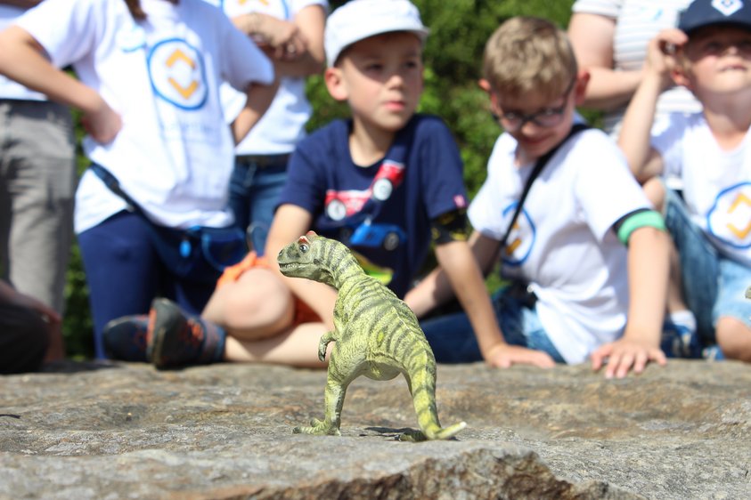 Und das passt ziemlich gut zu diesem Ausflug und auch zum gesamten Familienwochenende. Denn auch hier ist in kurzer Zeit ein ganz besonderer Zusammenhalt entstanden. Und dabei passen nicht nur die Älteren auf die Jüngeren beziehungsweise die Erwachsenen auf die Kinder auf: Auch die Jüngsten geben vorbildlich aufeinander Acht, machen sich beispielsweise ganz selbstverständlich gegenseitig darauf aufmerksam, wenn es mal bei irgendjemandem „piept“. Familiärer Zusammenhalt eben – wie damals schon bei den Dinosauriern.