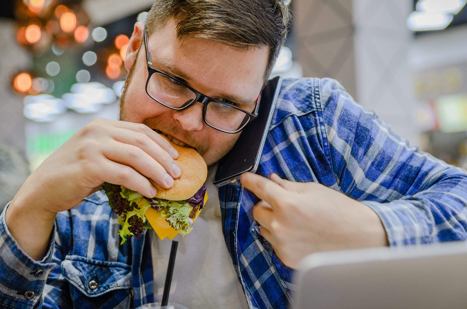 Zeitung zuklappen, Fernseher aus, Handy weglegen - beim Essen sollten wir uns nicht ablenken lassen, weil wir sonst nicht spüren können, wann wir satt sind. Nicht im Stehen essen, sondern nur im Sitzen am Tisch mit ausreichend Zeit. Wer langsam isst und ausreichend kaut, merkt besser, wann er satt ist.