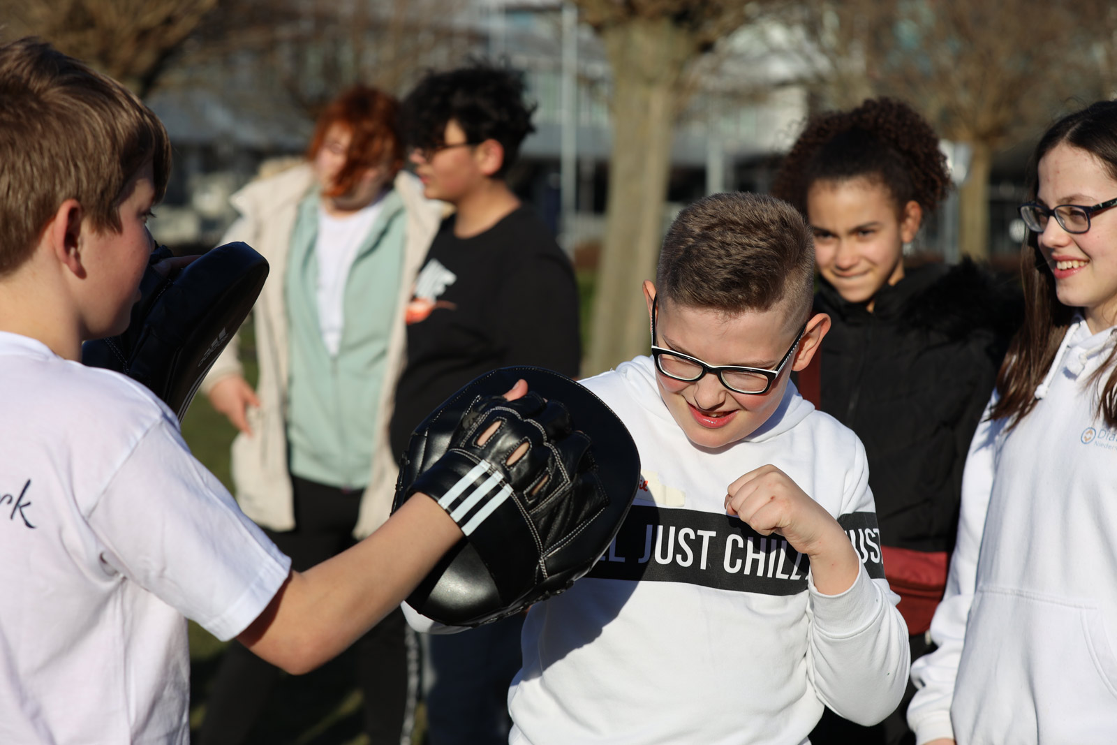 Ein Beispiel sind da sicher die Anregungen, wie man sich abgrenzen und mit lauter Stimme auch verbal wehren kann. Die Kinder und Jugendlichen haben da ein konkretes Bild bekommen, und zwar das eines Radios. Das hat ja auch einen Knopf zum laut und leise drehen. So gibt es eine konkrete Vorstellung, dass man den Regler vielleicht auch mal auf zehn stellen muss, wenn es darauf ankommt. Außerdem haben wir ja auch einige körperliche Selbstverteidigungstechniken ausprobiert und erfahren, was man da allein schon mit Körpersprache machen kann.
