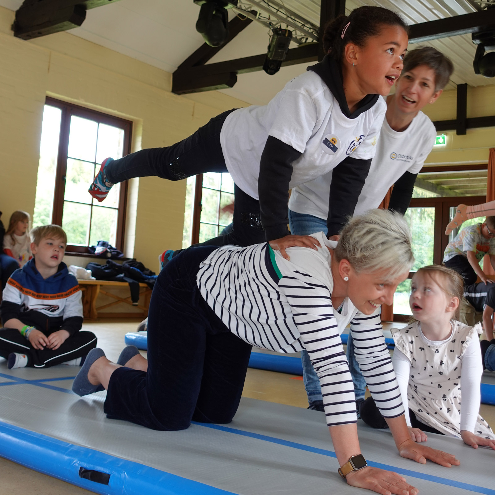 Genau. Danke in diesem Zusammenhang übrigens dafür, dass ich die Airtrack-Matten zur Verfügung gestellt bekommen habe. Darauf kann man richtig gut turnen – und kämpfen! Jedenfalls wurde auch mein „Ringen und Raufen“ wunderbar angenommen. Dabei hat mich dann übrigens auch wieder beeindruckt, wie viel Rücksicht die Kinder aufeinander genommen haben.