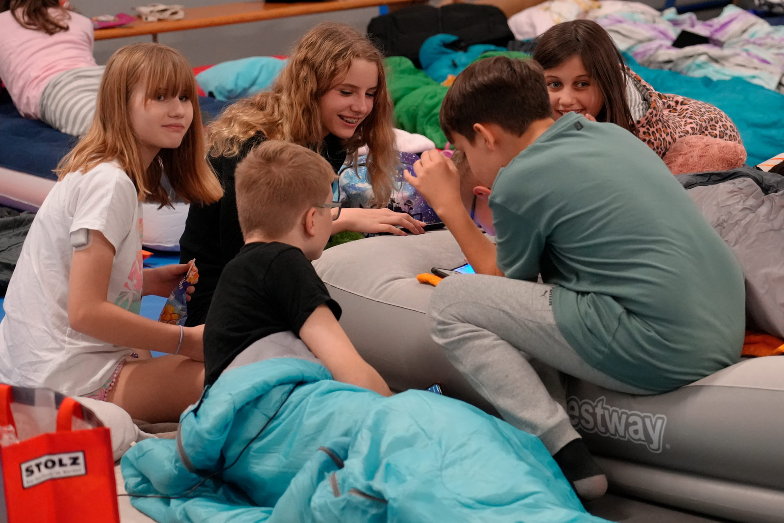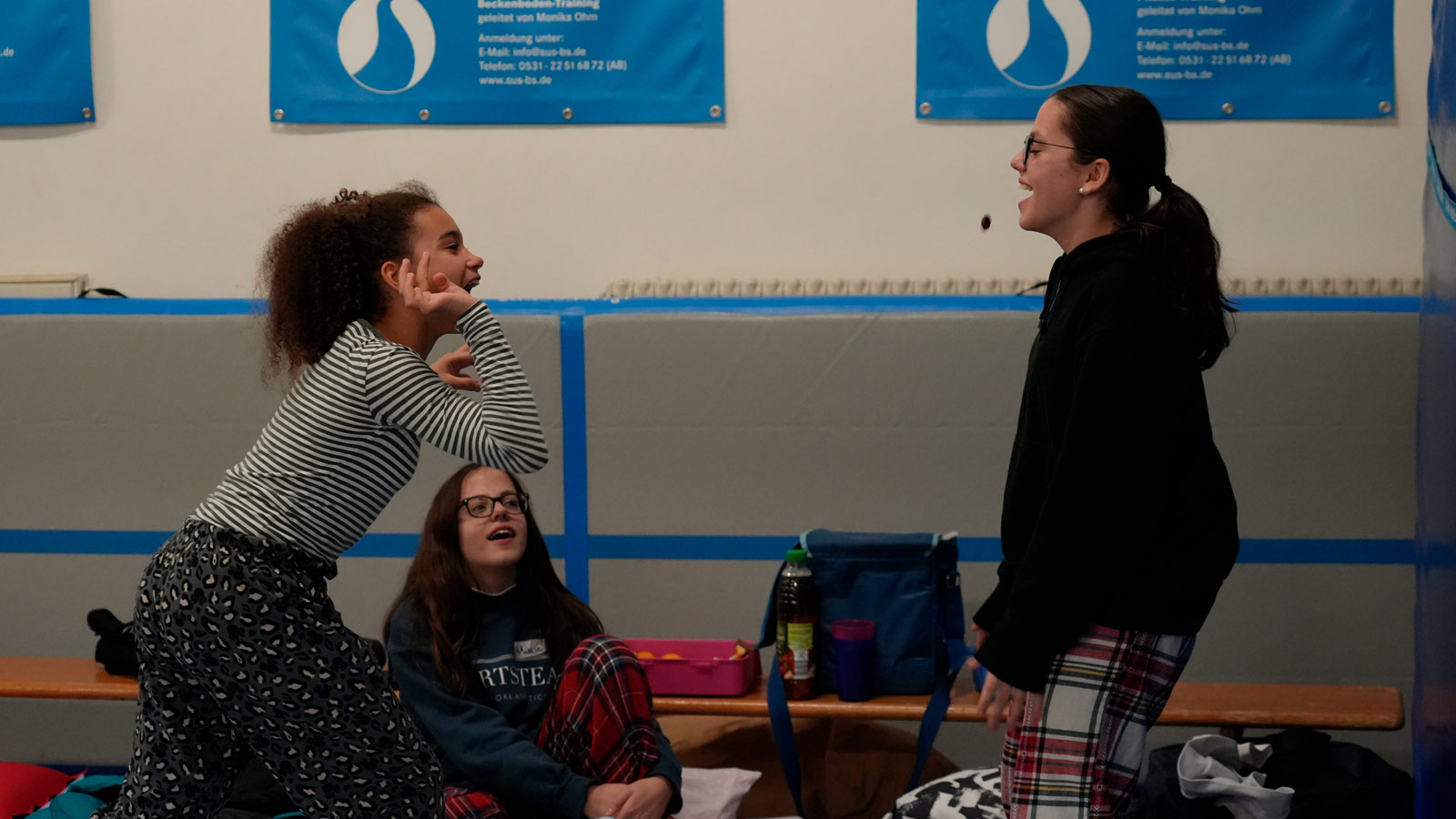 Die Übernachtung in der Turnhalle wurde so richtig gemütlich, als noch gemeinsam im Schlafanzug ein Film geschaut wurde. Allerdings nicht, ohne vorher auch noch die letzten Reste an Energie mit ein bisschen Toben und Kabbeln zu verbrauchen. #sicherundstark, dies wurde deutlich, ist inzwischen eine Säule unserer Angebote vom Typ F, die einen nicht zu unterschätzenden Beitrag dazu leistet, Kindern mit Diabetes Selbstliebe, Empathie und auch Resilienz mit auf den Weg zu geben. Die Reihe setzen wir gefördert durch die Barmer natürlich auch in 2023 fort.