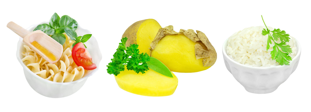 Frisch gekochte Kartoffeln, Nudeln, Reis und Brot enthalten einen hohen Anteil an Stärke. Die Spaltung der enthaltenen Kohlenhydrate beginnt schon im Mund beim Kauen. Vom Darm aus gehen sie als Glukose ins Blut und sorgen für einen Anstieg des Blutzuckerwerts.