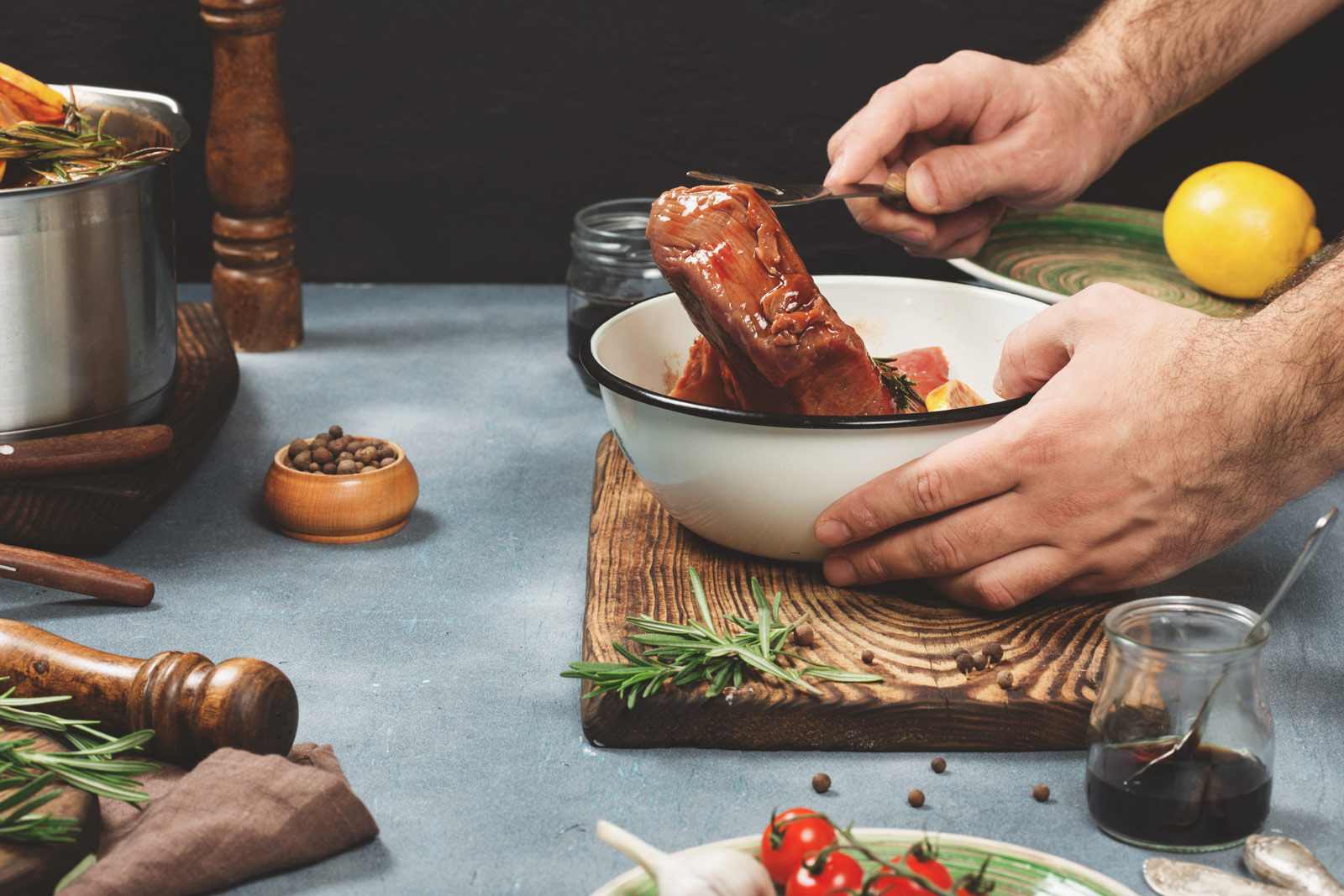 Oder Ihr macht Euch selbst eine gesunde Marinade. Das geht ganz einfach. Beispielsweise Hühnerbrust eingelegt in eine Marinade, die aus einem Esslöffel Öl, zwei Esslöffeln Sojasauce und etwas Honig besteht, schmeckt köstlich. Auch Marinaden, die viel Kräuter und etwas Zitronensaft enthalten, kommen mit wenig Öl aus.