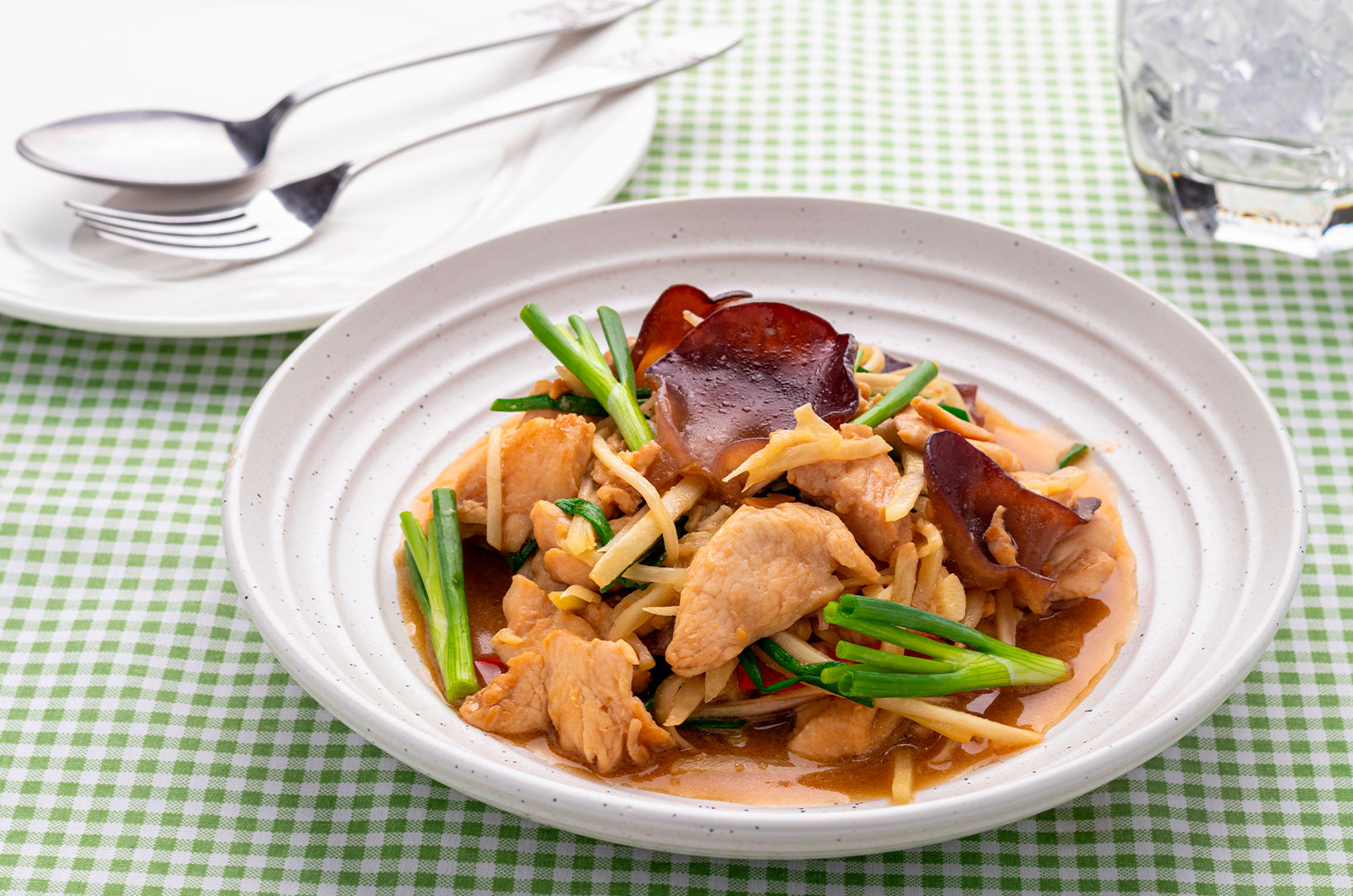 Mu-Err-Pilze mit heißem Wasser übergießen und 20 min einweichen. Öl in einer Pfanne erhitzen und die Cashewkerne unter ständigem Wenden goldbraun braten. Anschließend die Kerne herausnehmen (Fett aufbewahren in der Pfanne).