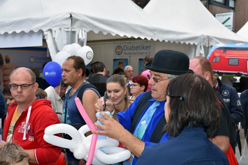 Unser Auftritt auf dem 35. Tag der Niedersachsen war für uns ein voller Erfolg. Annährend 800 mal konnten wir den Diabetesrisiskotest durchführen, über 60 Besucherinnen und Besucher mit Interesse an einer Selbsthilfegruppe in Wolfsburg hinterließen uns ihren Kontakt und zahllose interessante Gespräche konnten unsere Aktiven führen. Gut gelaunt, mit viel Spaß an der Sache und mit tatkräftiger Unterstützung durch den Ballonmagier Thierry Dourin ging es für uns durchs Wochenende. Diese kleine Fotostrecke gibt einen Einblick in das Geschehen.