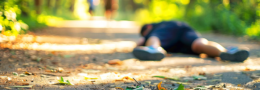 Eine ältere Dame liegt bewusstlos auf dem Boden