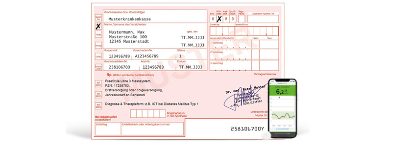 Ein Rezept über die Verordnung des FreeStyle Libre 3 durch die AOK
